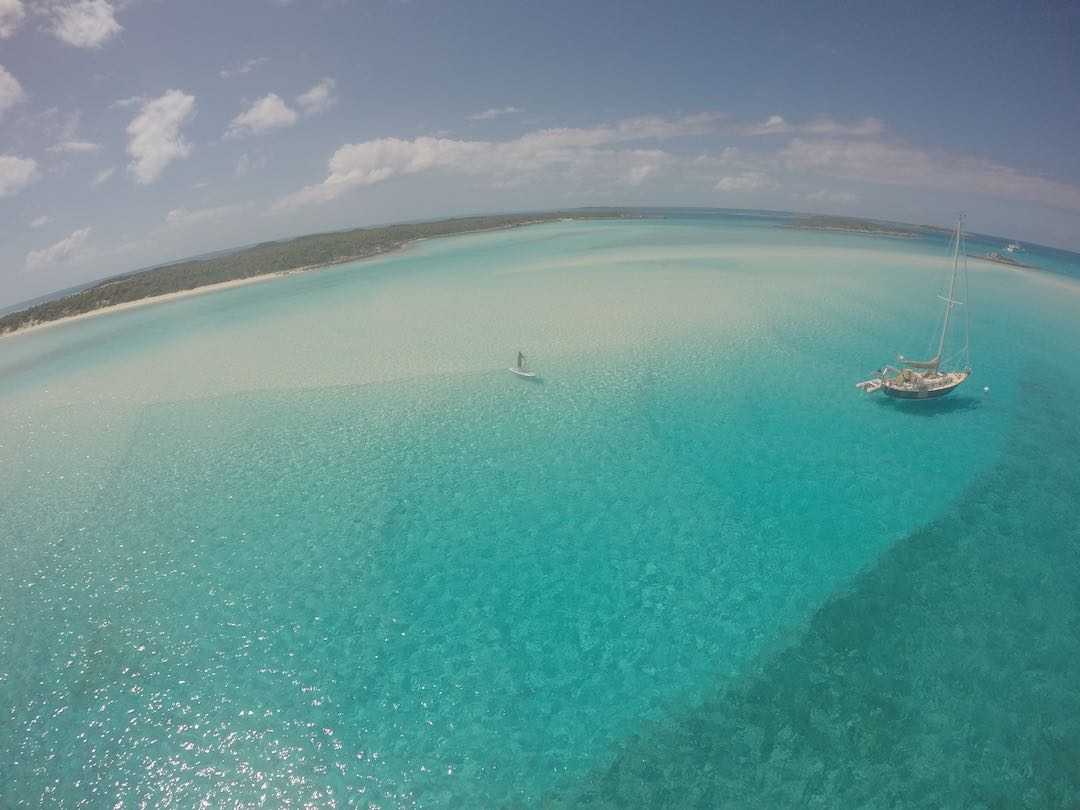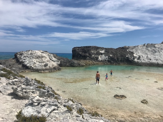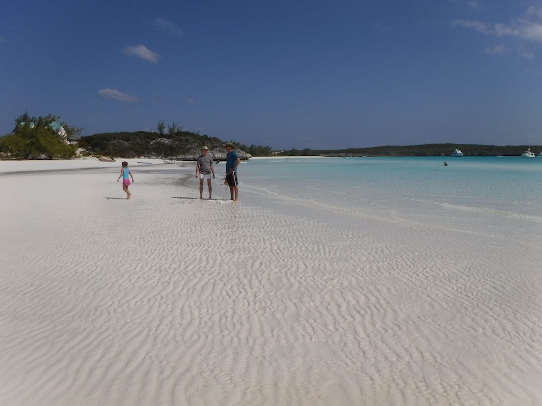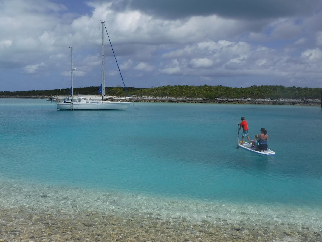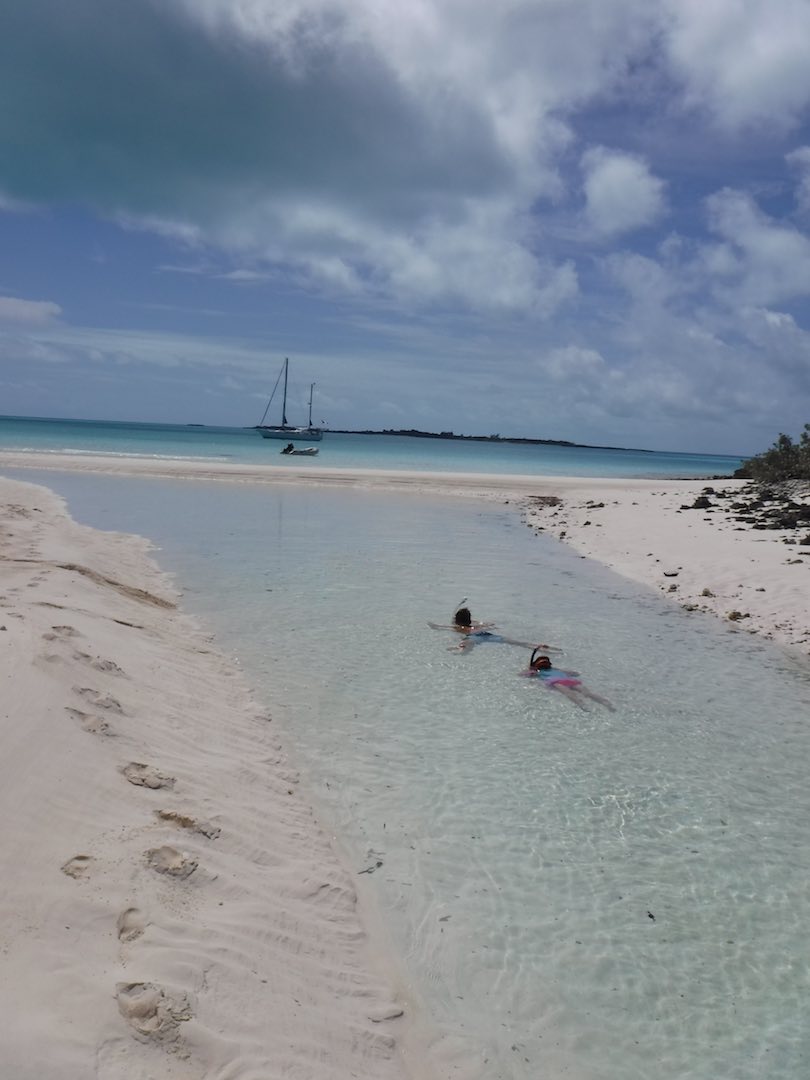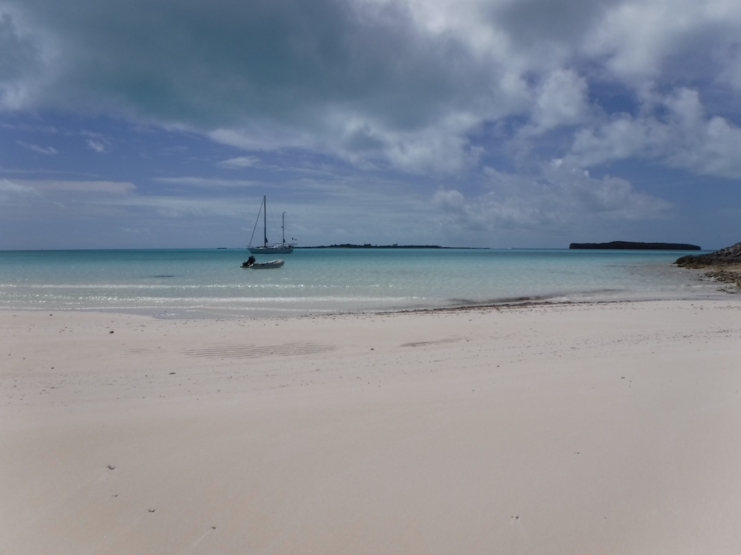 Our days have still been full – Sunday we did the last grocery run for us, joined a Bahamas Baptist church service, then picked up anchor for a heeled-over sail down to White point (about 3 hours south). Wind on the nose but Amel surprised us by performing well with the apparent wind just 45deg off the nose. No hope that Mandolin could ever have come close to that!