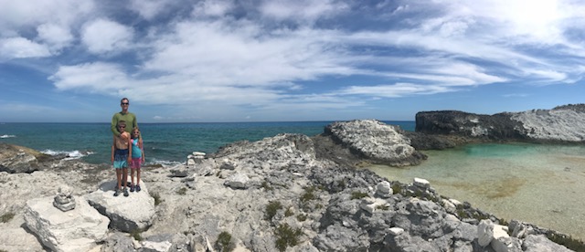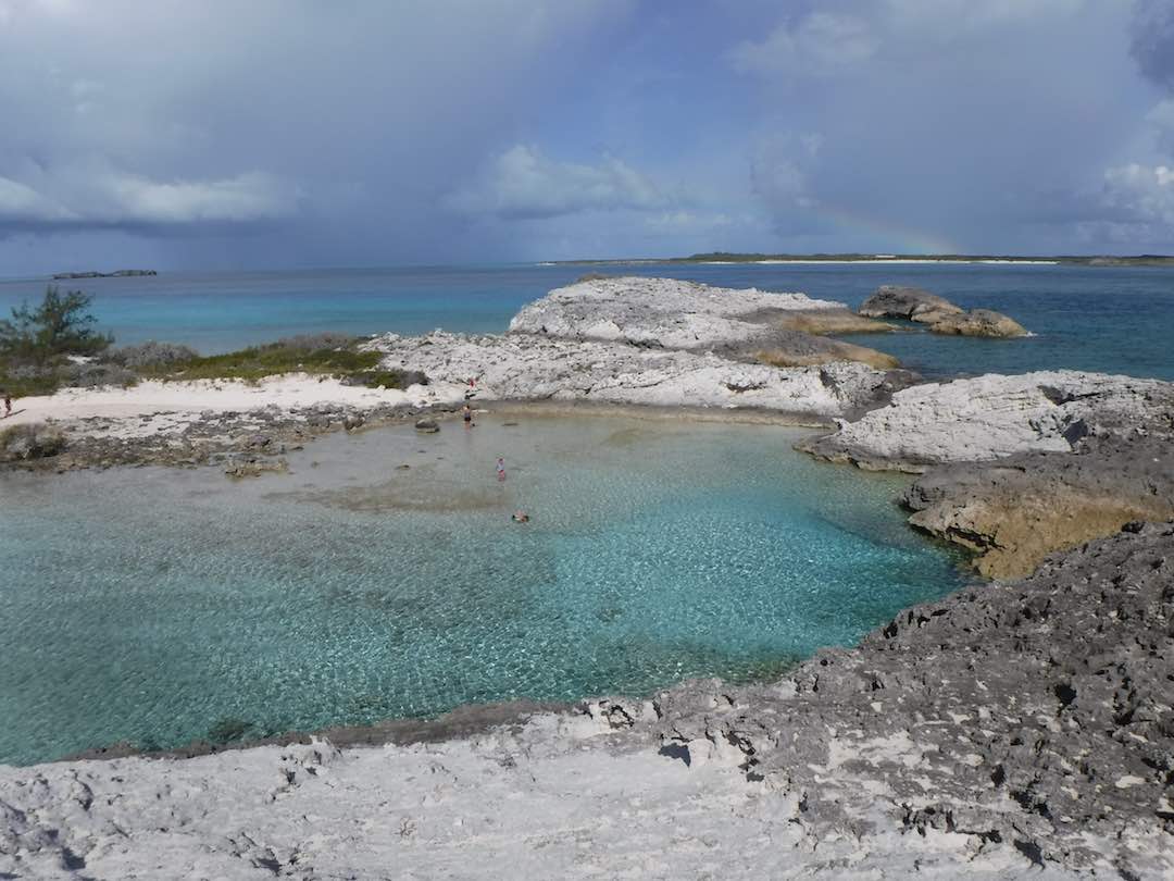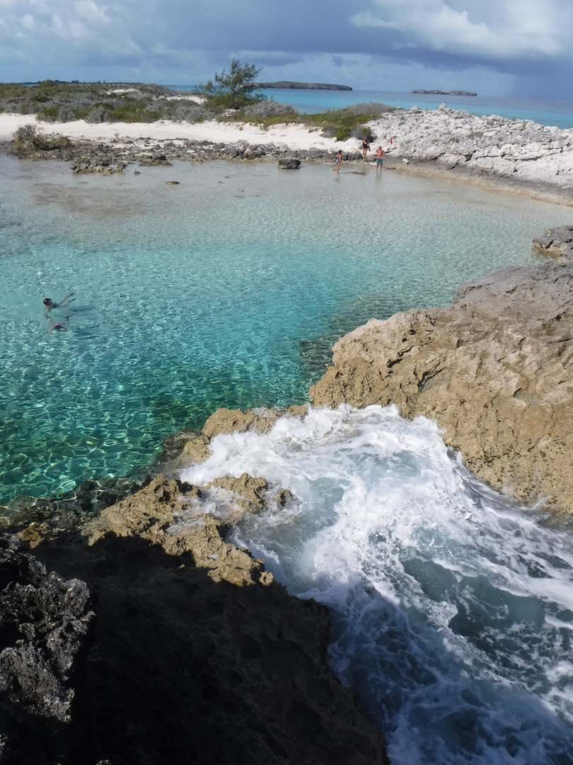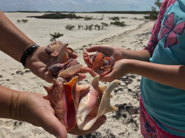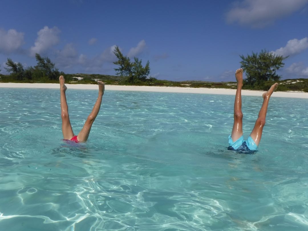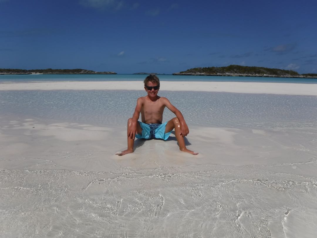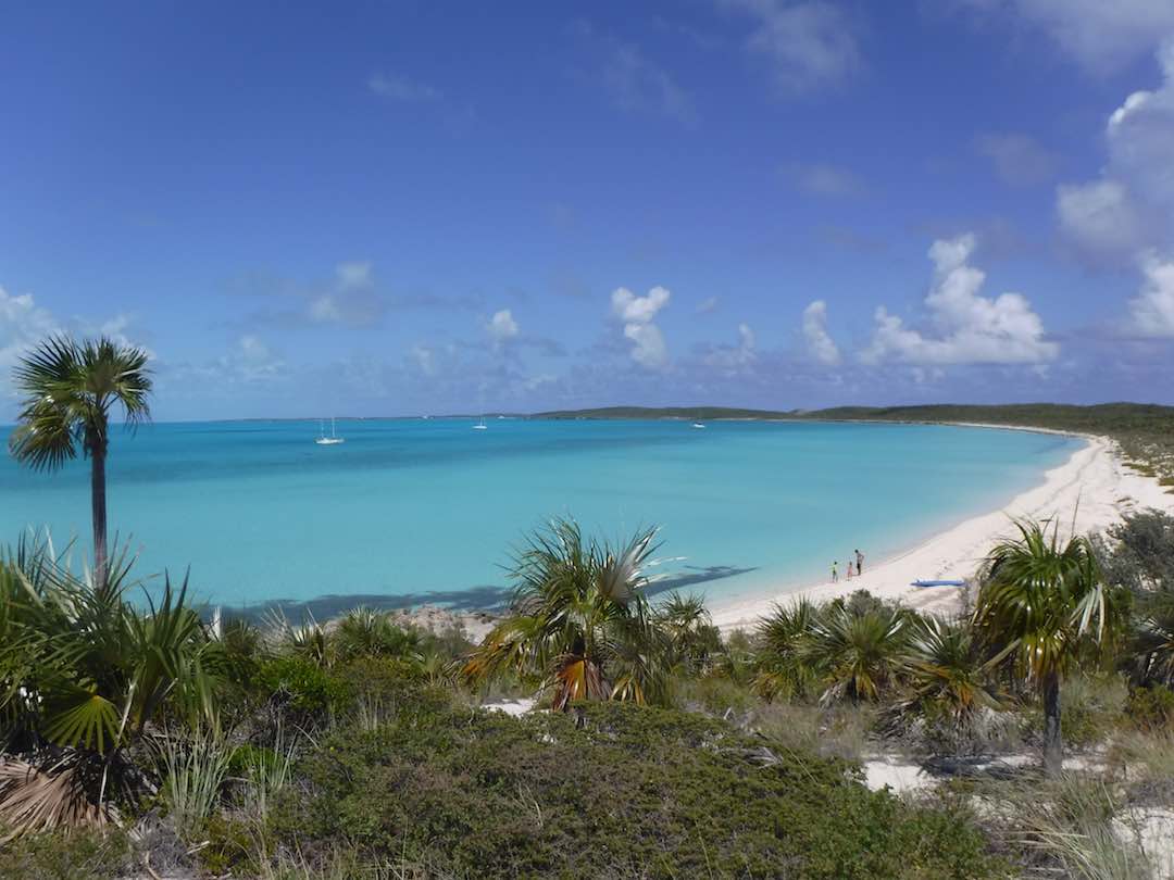 Our days have still been full – Sunday we did the last grocery run for us, joined a Bahamas Baptist church service, then picked up anchor for a heeled-over sail down to White point (about 3 hours south). Wind on the nose but Amel surprised us by performing well with the apparent wind just 45deg off the nose. No hope that Mandolin could ever have come close to that!