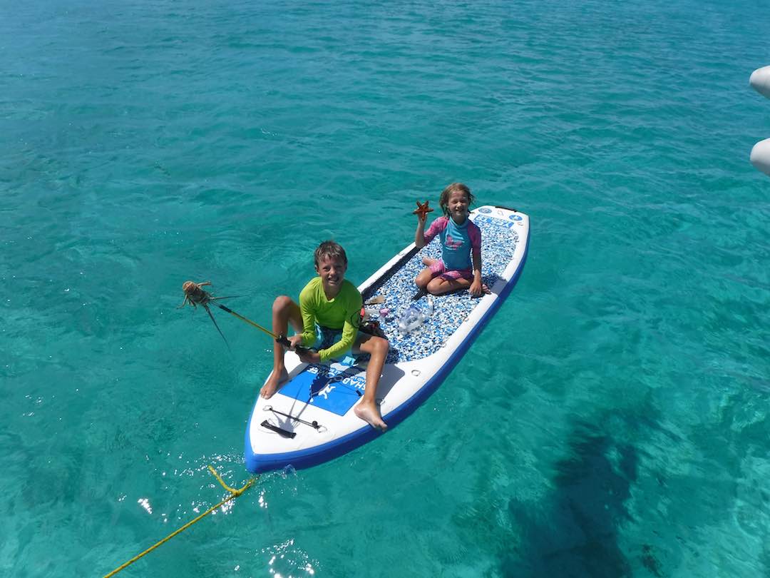 Emma on paddleboard – Taking a moment to recharge between beach hikes, swims to coral heads and paddle boarding upwind. It’s a rough life, but Emma’s figured out how to handle it all!