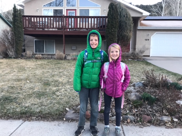 Happy school work involves comfortable kids…picking their own location for work as along as they accomplish something is encouraged. Emma loves to snuggle in jammies in bed for literacy….henry is all about sun, wind and crazy places!