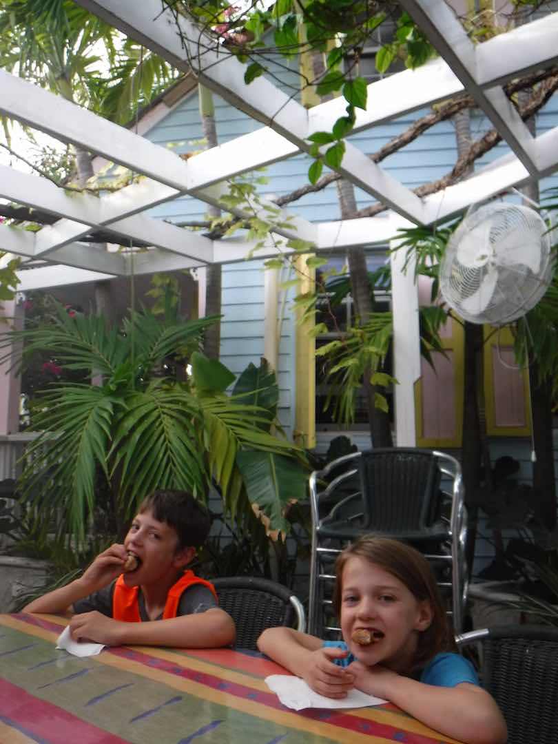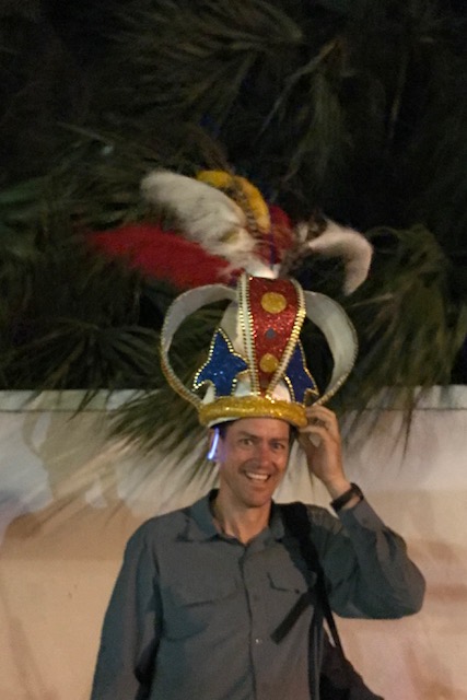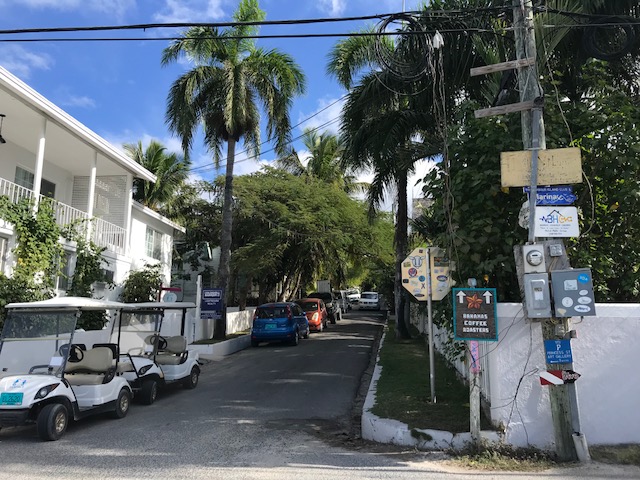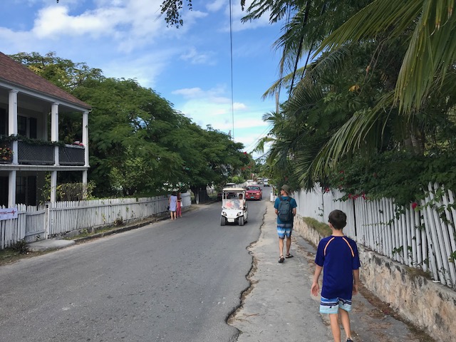 Our trip to town was not as productive as we hoped. We arrived at 12:30…only to find out that many stores close for lunch from 12-1. Then found out that the key grocery stores we needed actually close every Wednesday for the afternoon. Some old holdover from England when the British settled on the island. So no bread, fruit or veggies for us. Even if the stores were open someone told us they were empty due to the extra holiday visitors. “Best to come back after the mailboat arrives Thursday night to replenish.” Classic Bahamas! Mike did have success finding his first official servings of cracked conch and conch fritters at a local restaurant which made him smile!