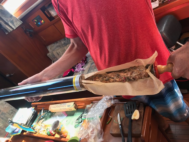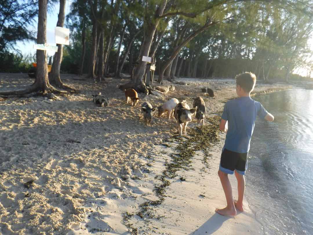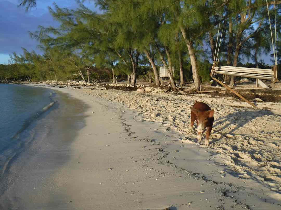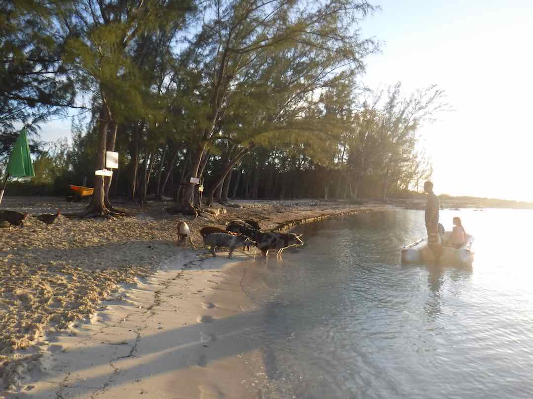 Our new anchorage is just a little spot tucked behind an island for wind protection and it has a beach full of pigs, ducks and turkeys to amuse the paying tourists.