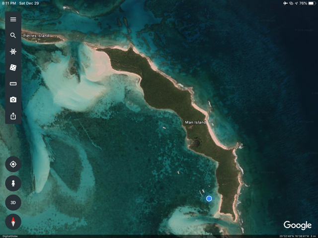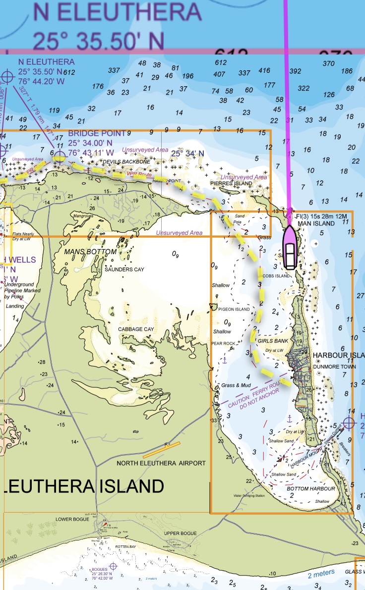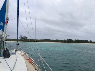 Today was busy with some apprehension this morning as we did the Devil’s backbone this time with no pilot leading us. We had our “breadcrumbs” from the navigation apps, and the route the pilot had taken matched the charts exactly. We knew from our prior boating experience that we could do it but still the stories that people have built up about the narrow passage had us taking extra precautions. We left today as the skies were clear, winds light – lots of good visibility to read the water which is critical in some areas of the Bahamas.