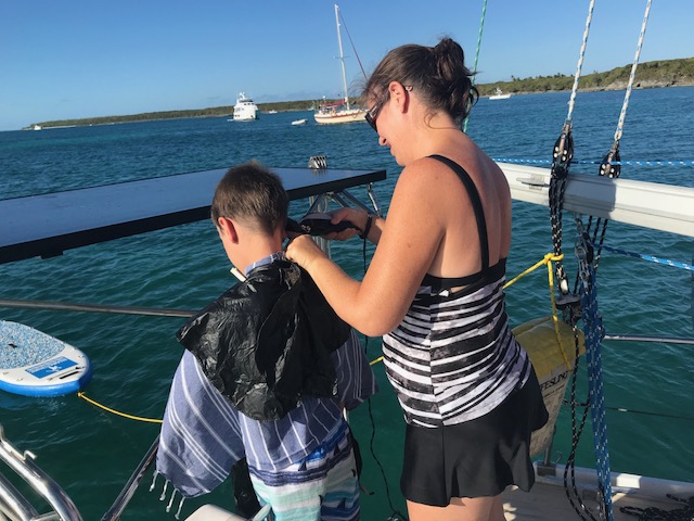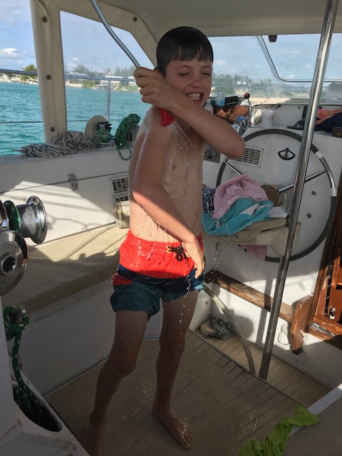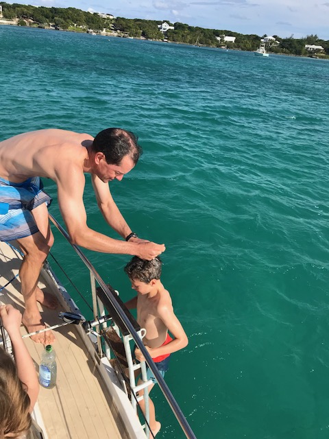 We made it uneventfully back to Spanish wells, anchored for a trip to town, then later in afternoon picked up anchor again to get to a better overnight anchorage. Felt like a long day. No swimming or lounging about today.