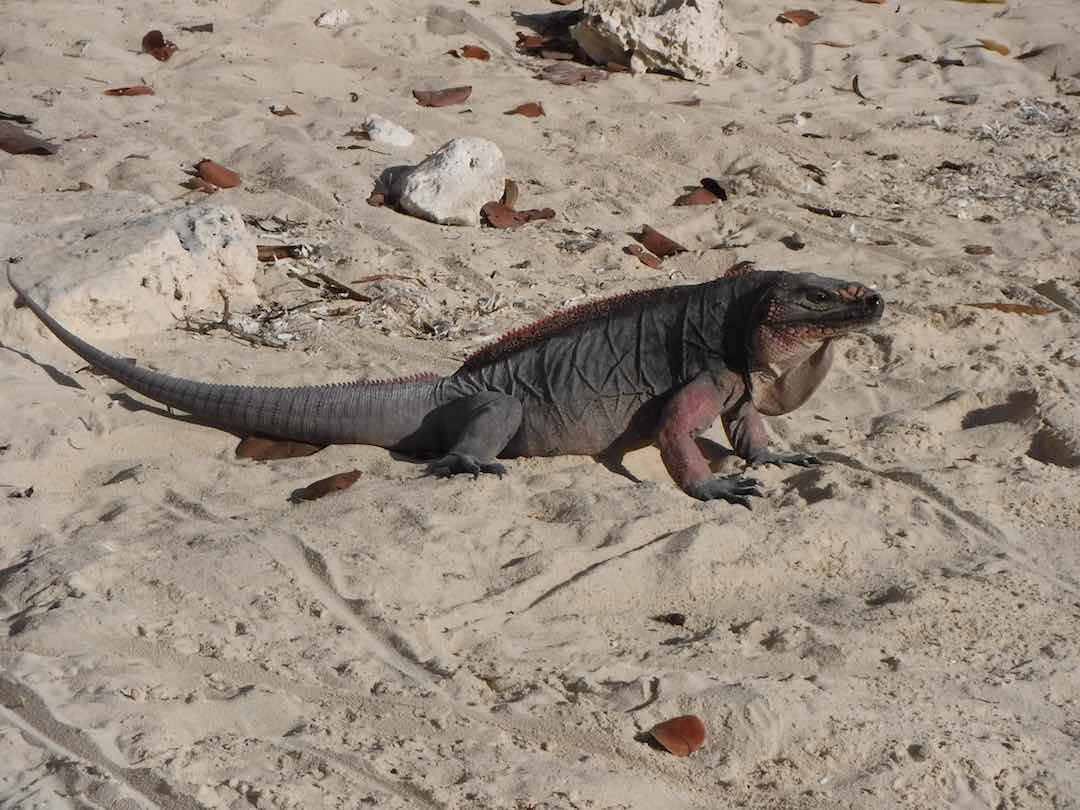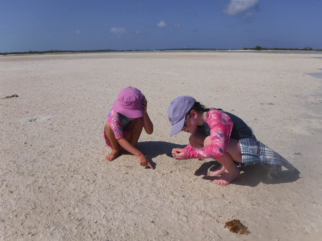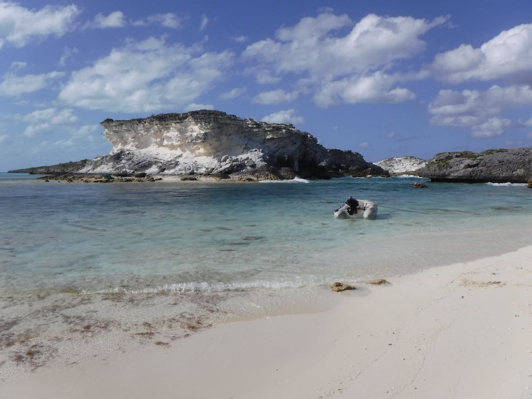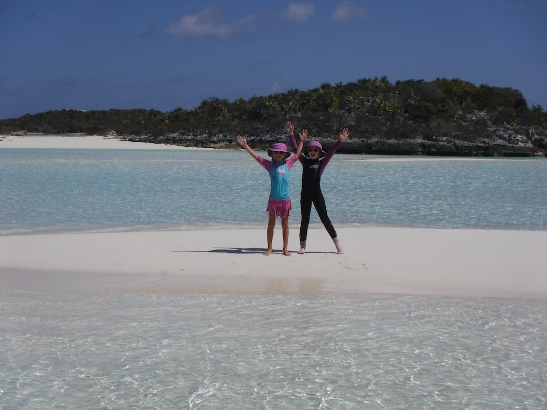 We explored the south side of Staniel Cay by dinghy, an area we’d never been to before. We found isolated beaches and good coral reefs for snorkeling near Staniel – even found another plane inhabited by fish in just a few feet of water. Back near Amel, we made it to shore under human power, with the boys swimming and the girls paddle boarding. We found a new beach also full of iguanas, this time under stunning white cliffs.