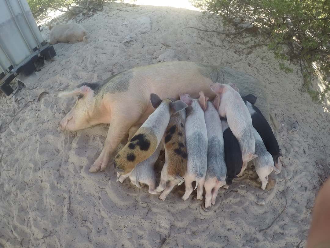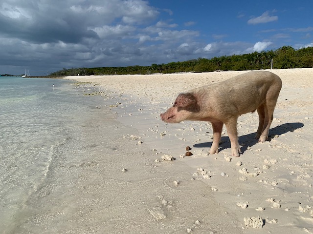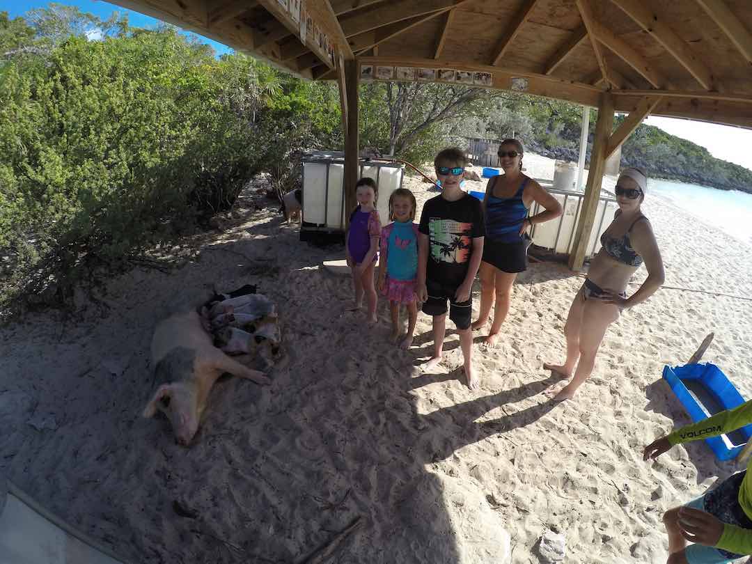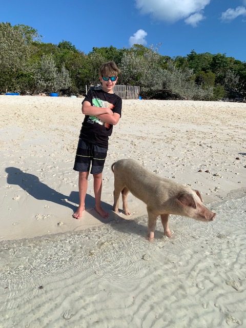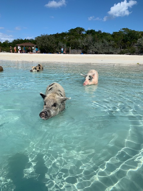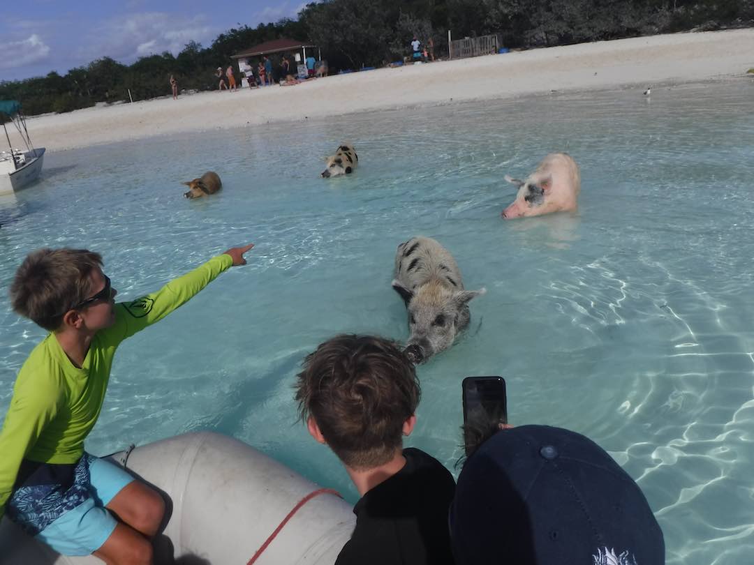 No Exuma visit is complete without a visit to see the swimming Piggies! The pig caretaker, John, happened to be there at the same time. Fun learning more about them and seeing all the new little piglets.