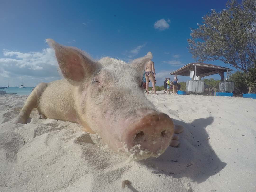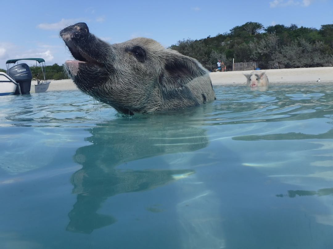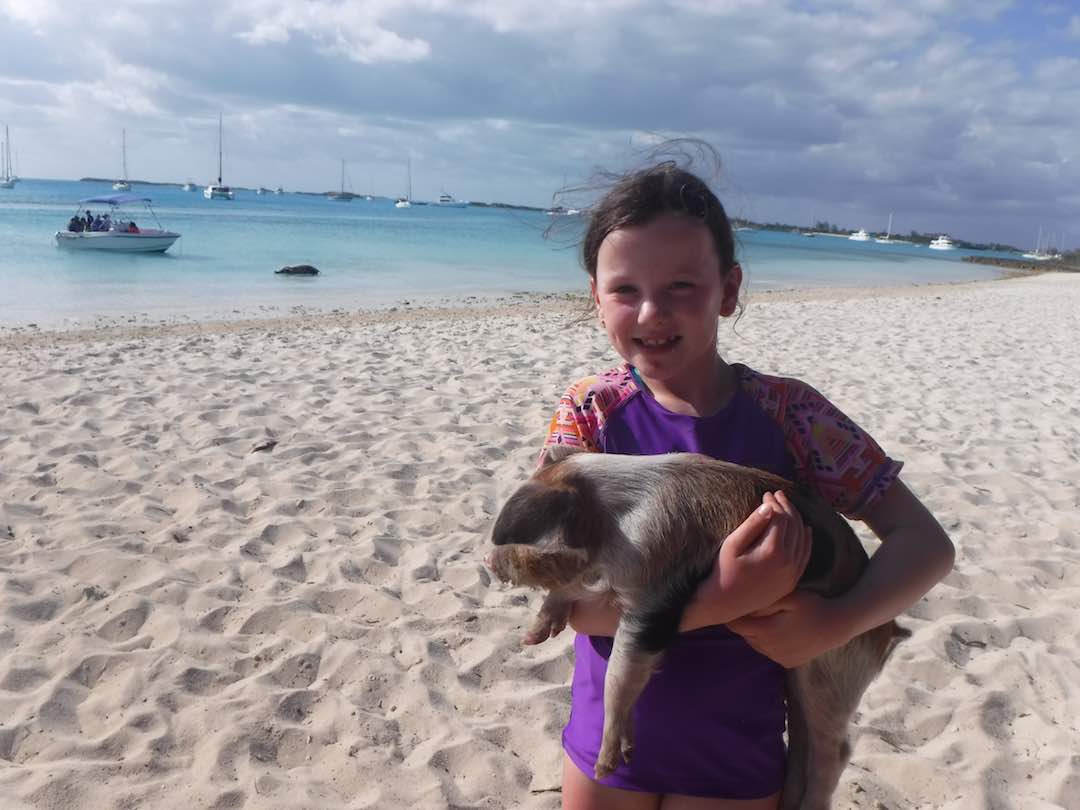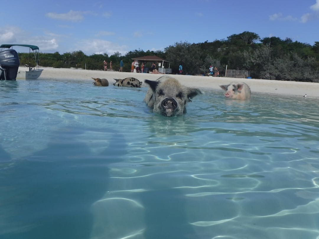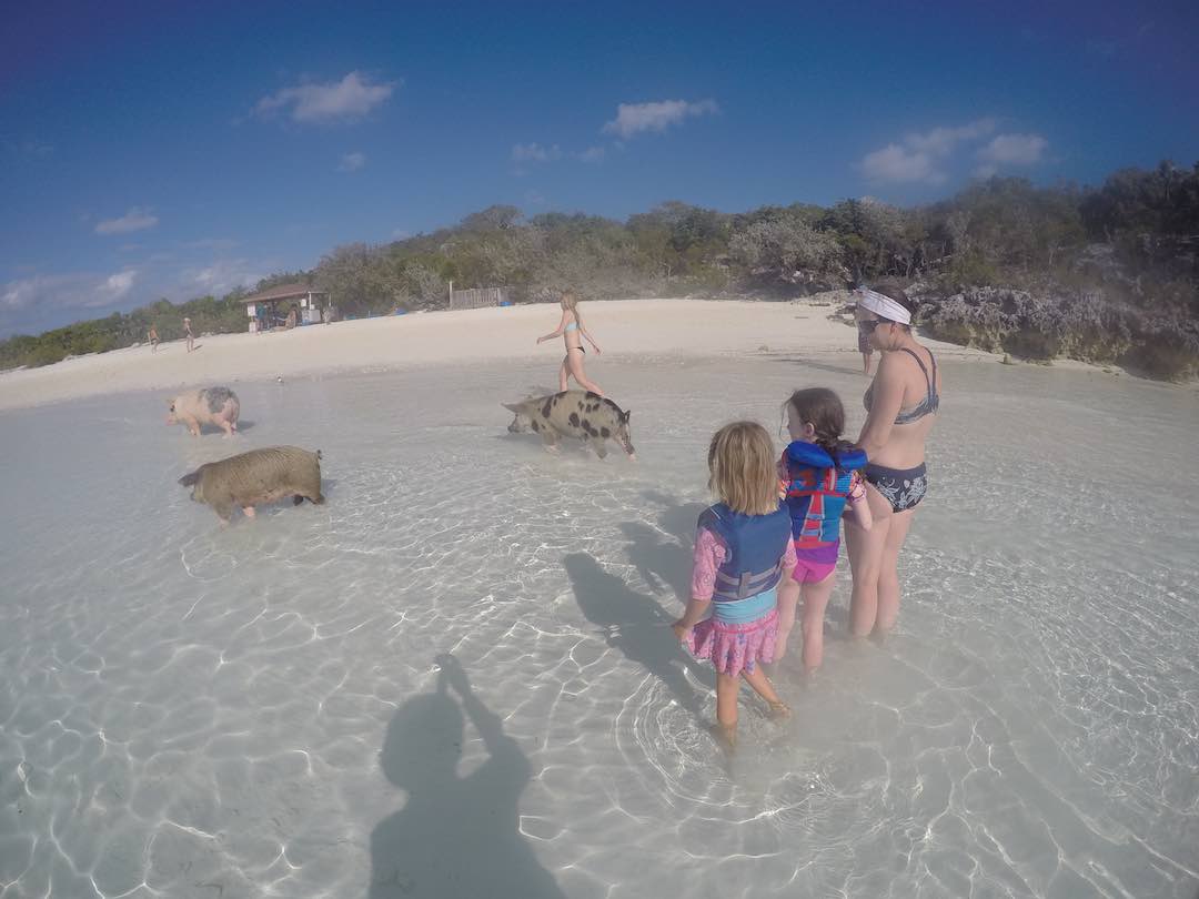 No Exuma visit is complete without a visit to see the swimming Piggies! The pig caretaker, John, happened to be there at the same time. Fun learning more about them and seeing all the new little piglets.