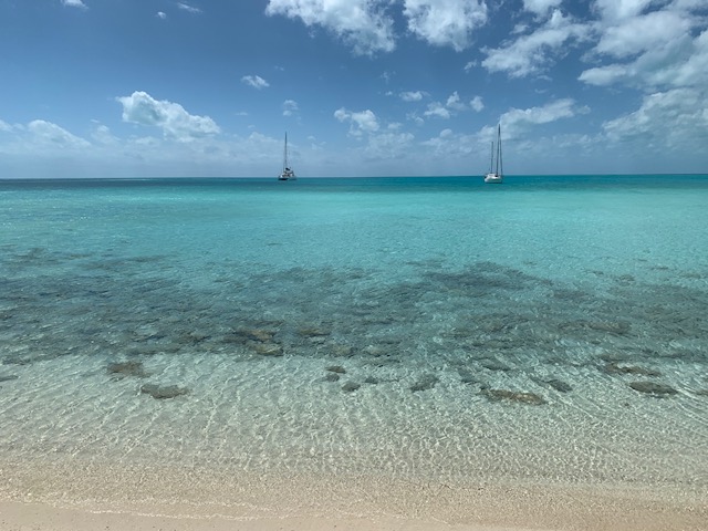 With apologies to those in the path of winter storms…. today was HOT. There may be a “cold” front on Wednesday due to bring wind and perhaps rain, but you wouldn’t know it today. Almost cloudless skies and light winds resulted in more swimming than usual and we found ourselves hiding from baking hot sun at lunch. We found it amusing (foreboding?!) to be booking return flights home this morning and be waiting extra time on hold with the airlines due to winter weather delays.